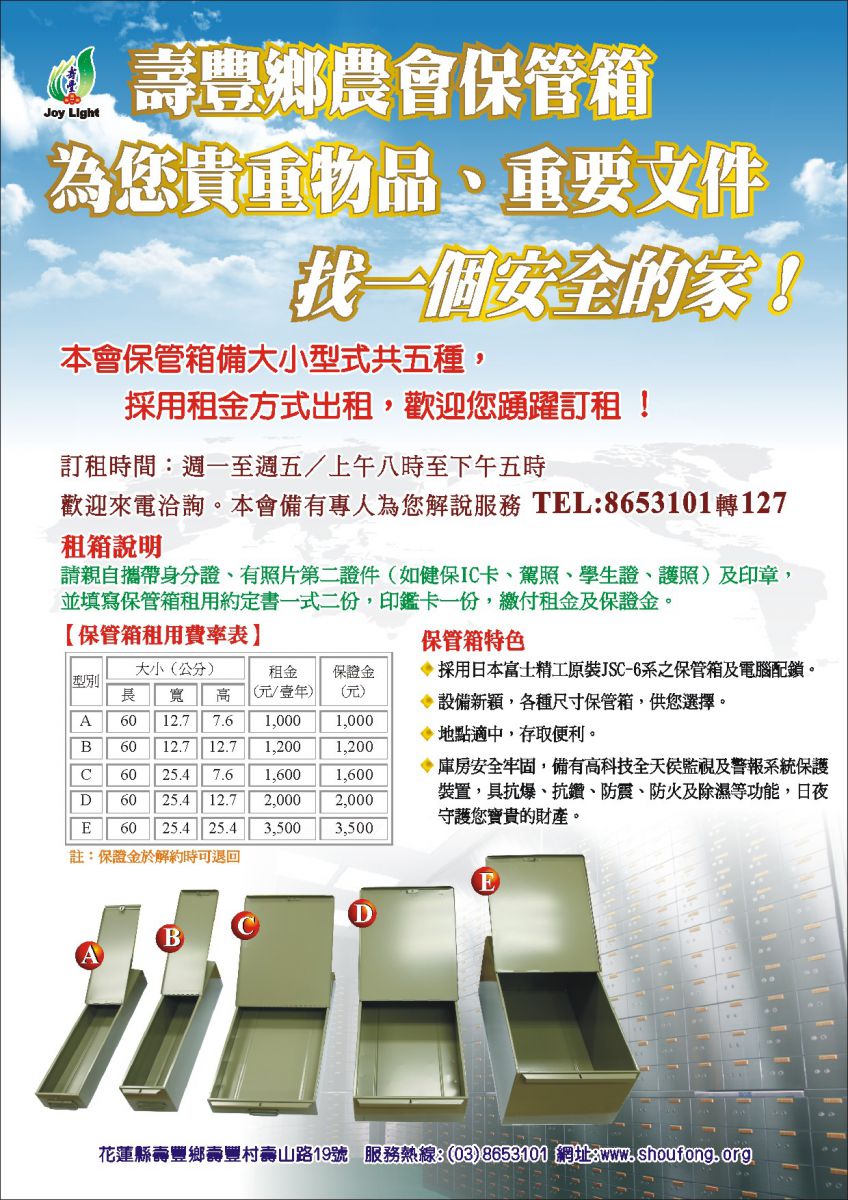 1.本會及豐裡、志學各分部設置自動提款機提供24小時的服務,豐山、水璉行外提款機金融服務。※※南區資訊中心各會員單位使用存摺格式※※