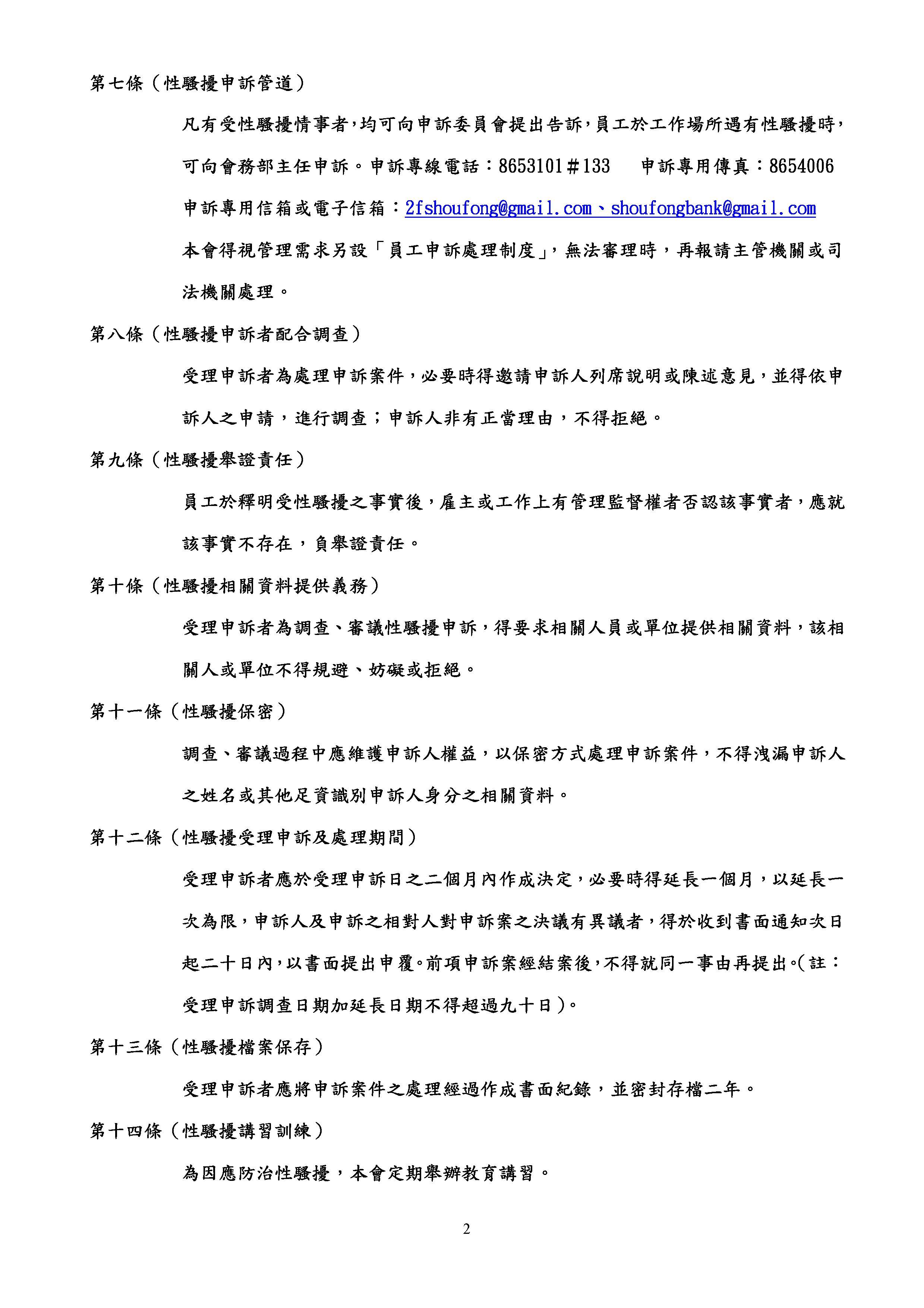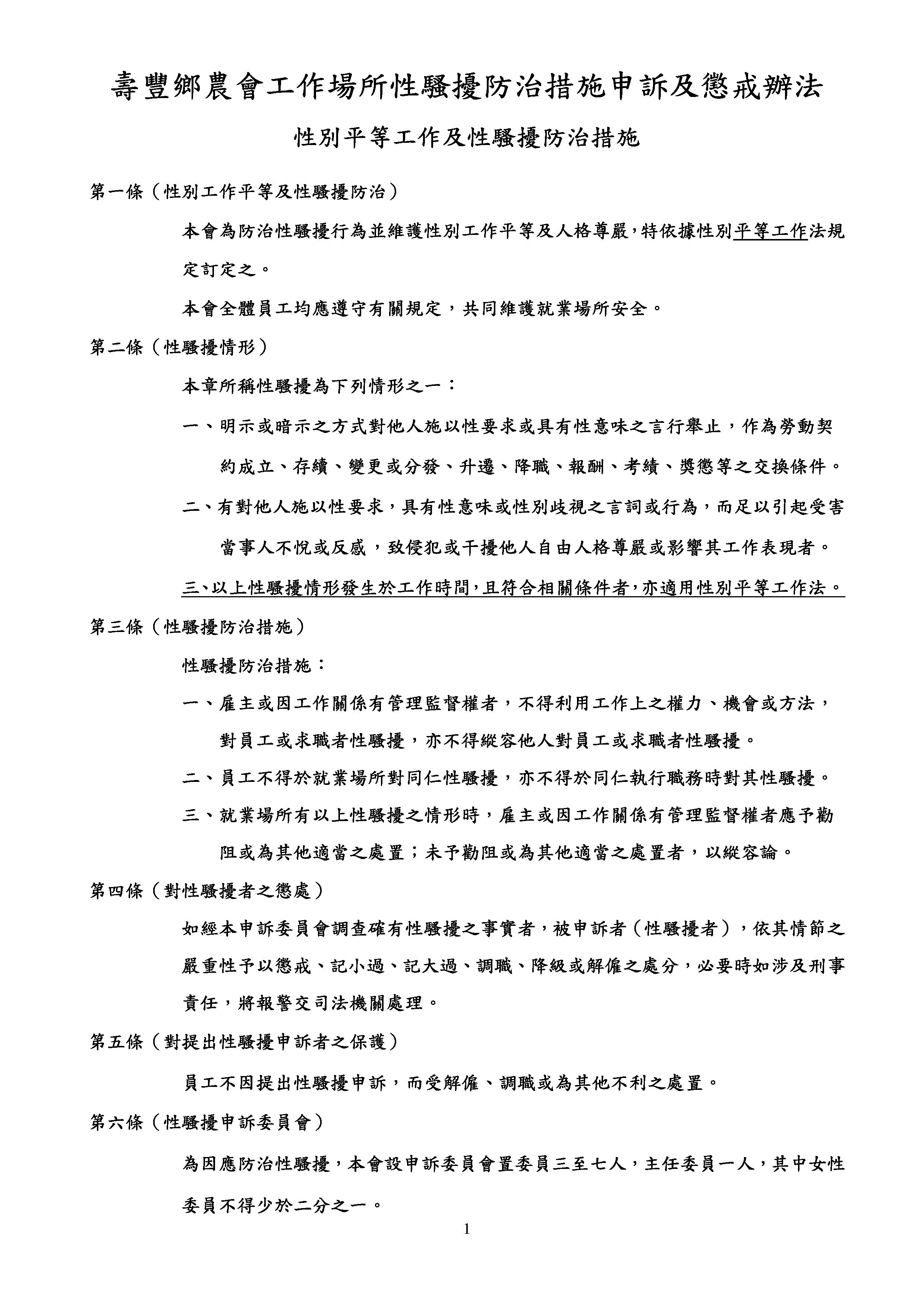 壽豐鄉農會工作場所性騷擾防治措施申訴及懲戒辦法