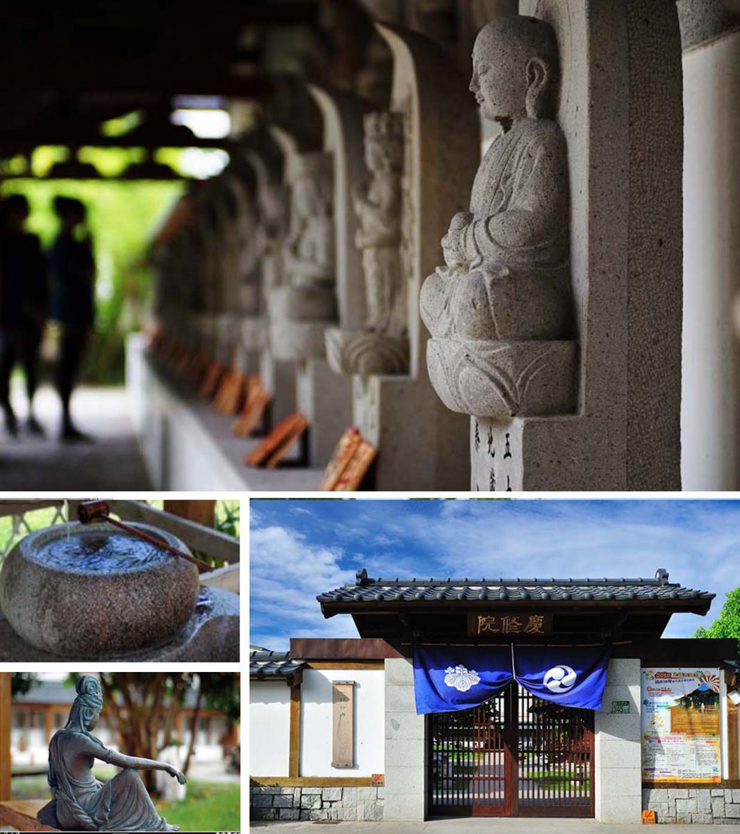 花蓮的三級古蹟吉安慶修院,由日治時期建造,是唯一保存完好的日式寺院,前身是日本真言宗高野派「吉野布教所」,除了是日治時期移民過來的日本人最主要的信仰中心外,更具備醫療所、課堂室以及喪葬法事服務處等各式功能。寺內所供奉的主神有弘法大師、不動明王以及毘沙門天王,慶修院建築主體遵循日本傳統建造,以木頭構架為主,屋頂為日本式四注攬尖,最為特別的是四角銅板形式的「寶形造」屋面,以及中開房間向後延伸的「布教壇」。庭院內草木茂盛,生機勃勃,環境幽靜,充滿了禪意。